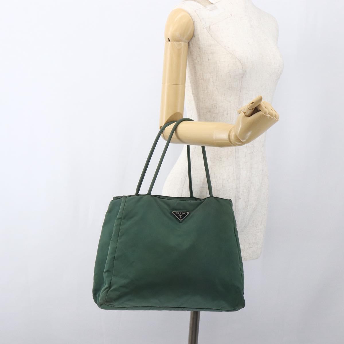 PRADA Tote Bag Nylon Khaki Silver - 166749