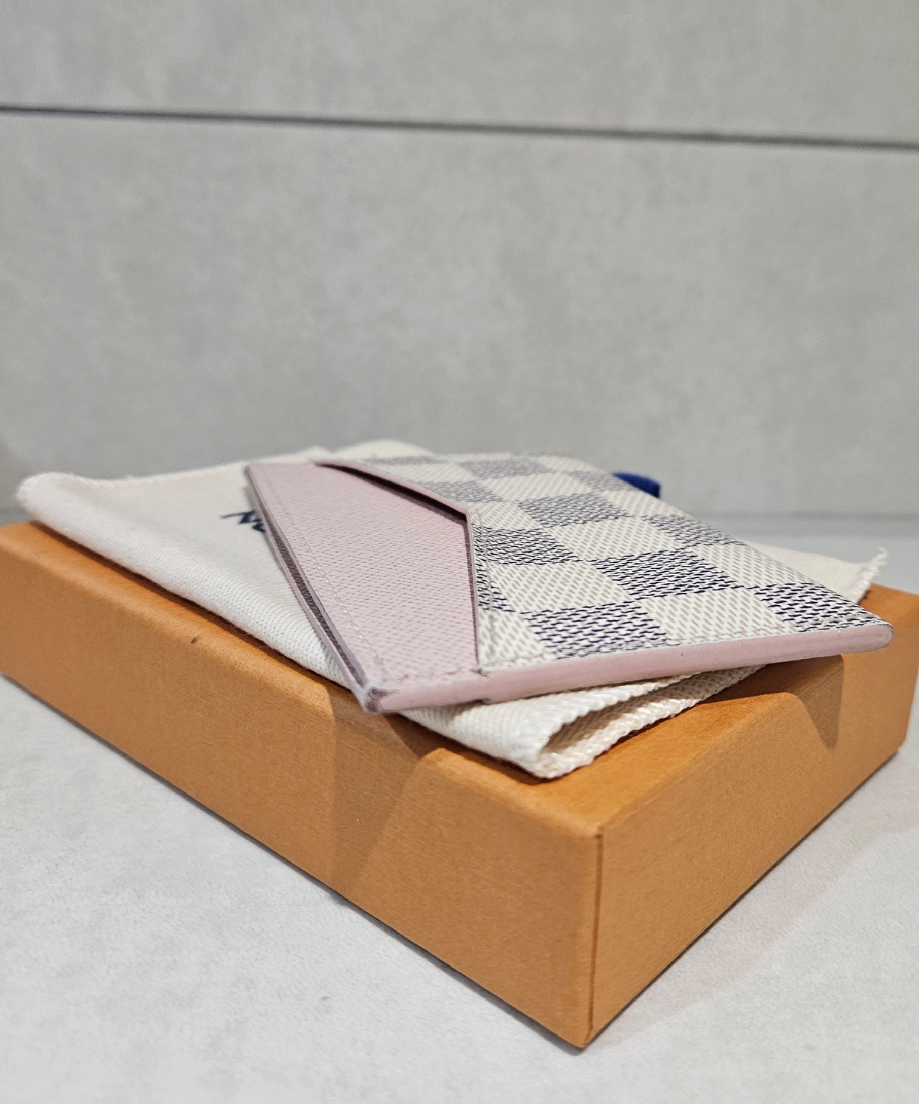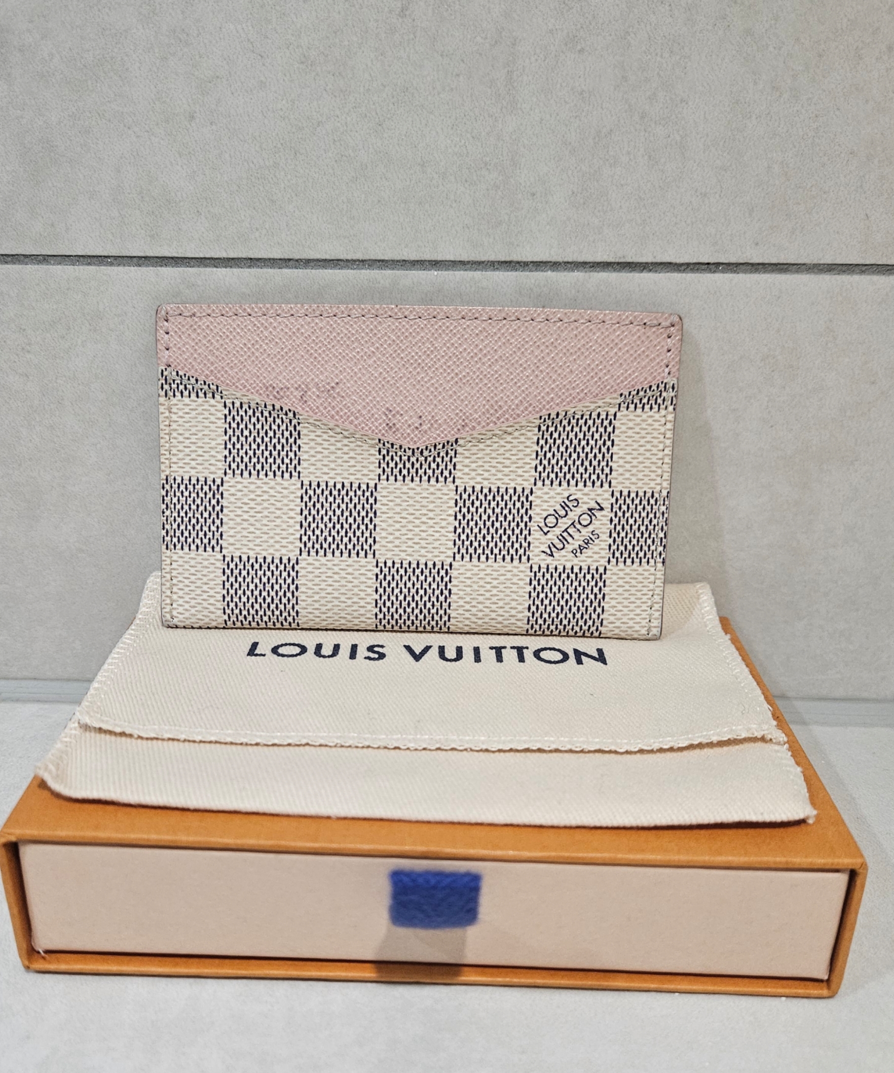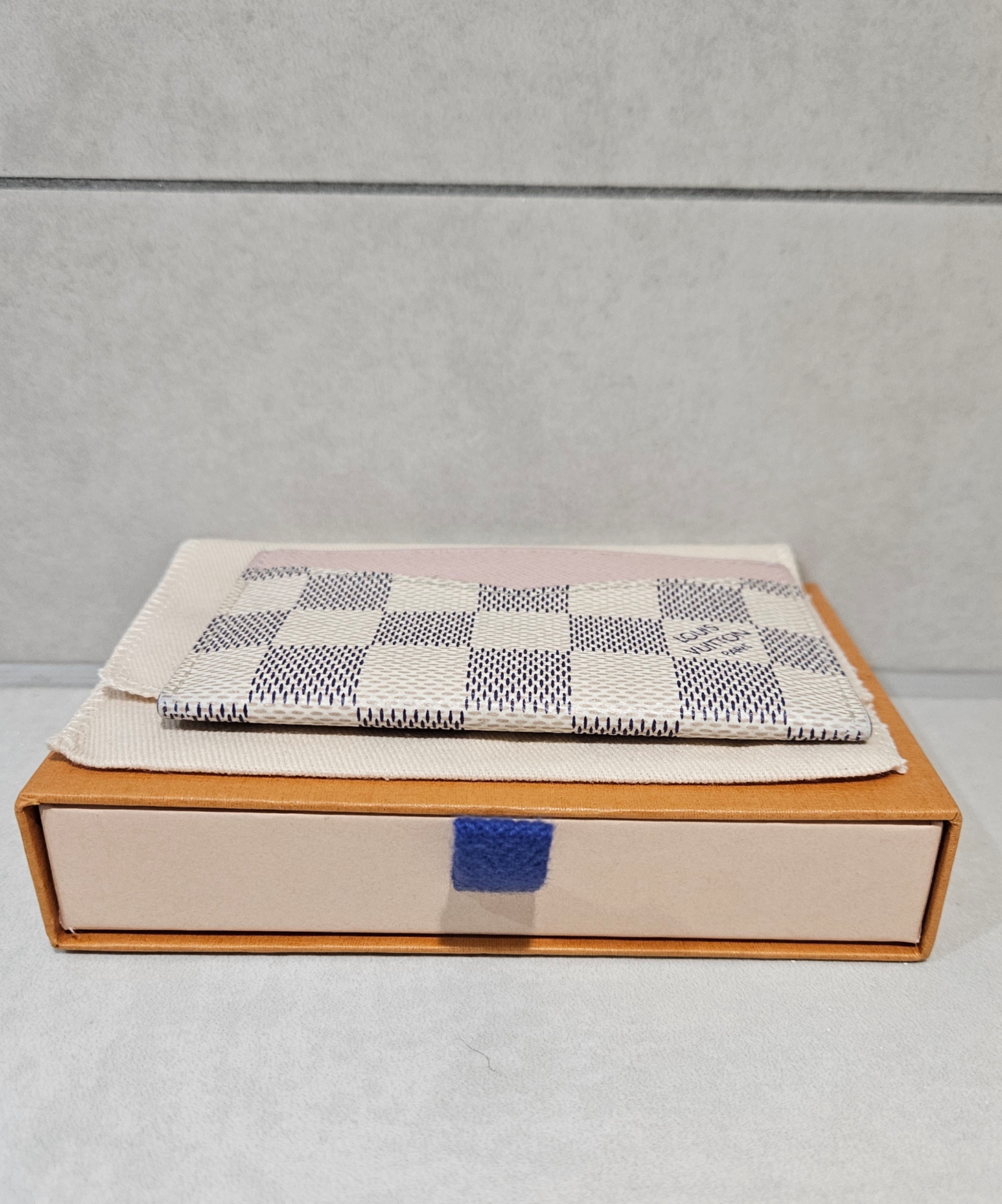 Pre Owned Louis Vuitton Damier Azur Porte Cartes Sampur Rose Ballerine Card Case
