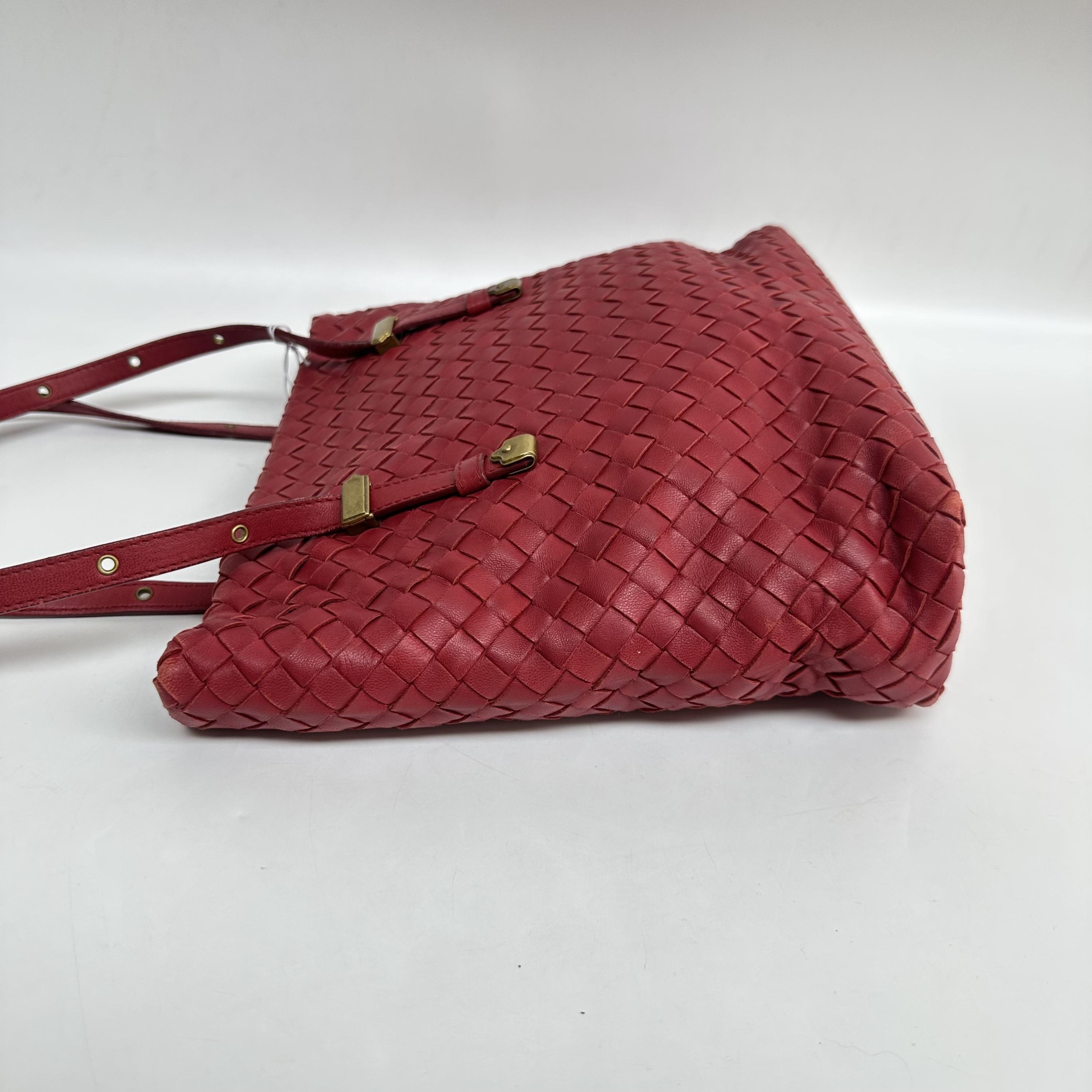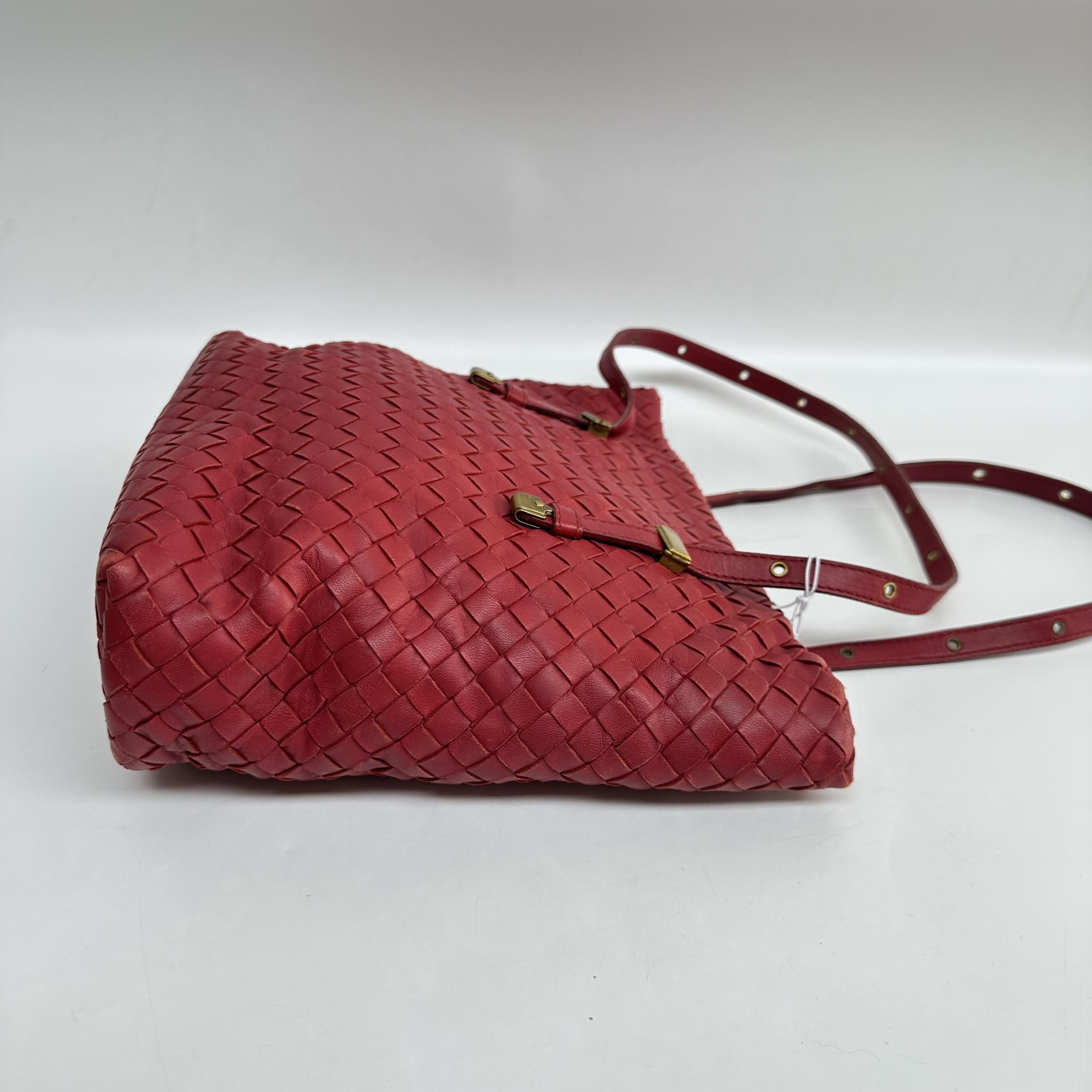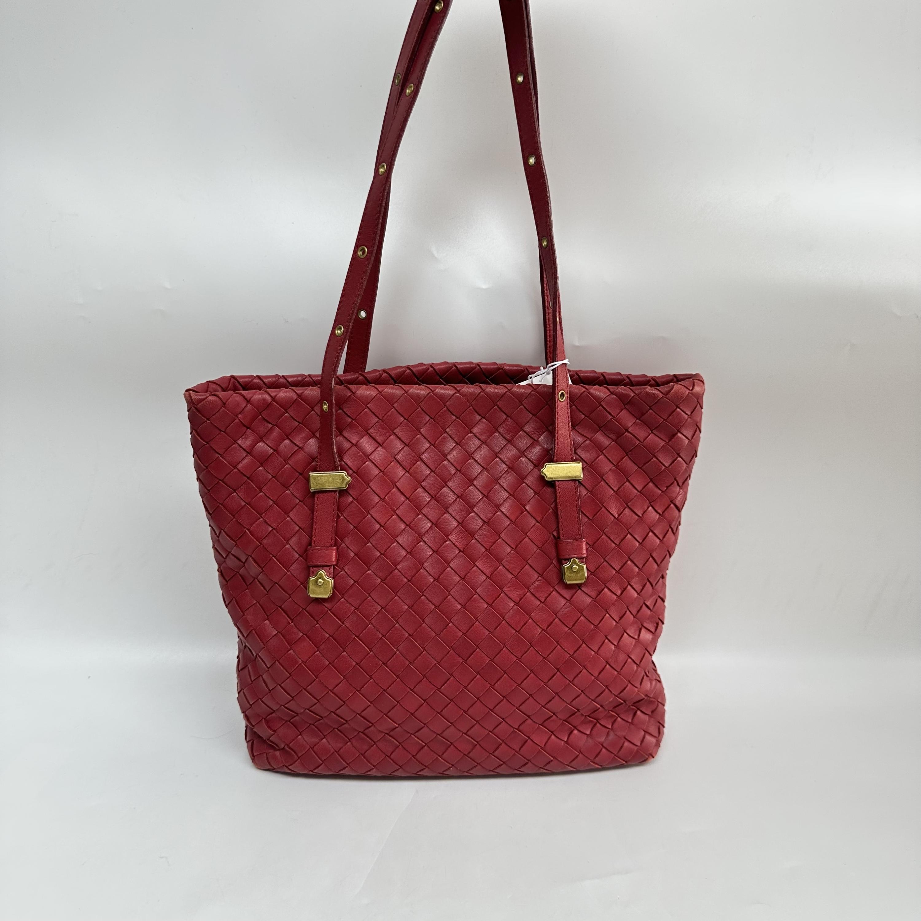 Red Intrecciato Leather Tote Bag - ##C350935