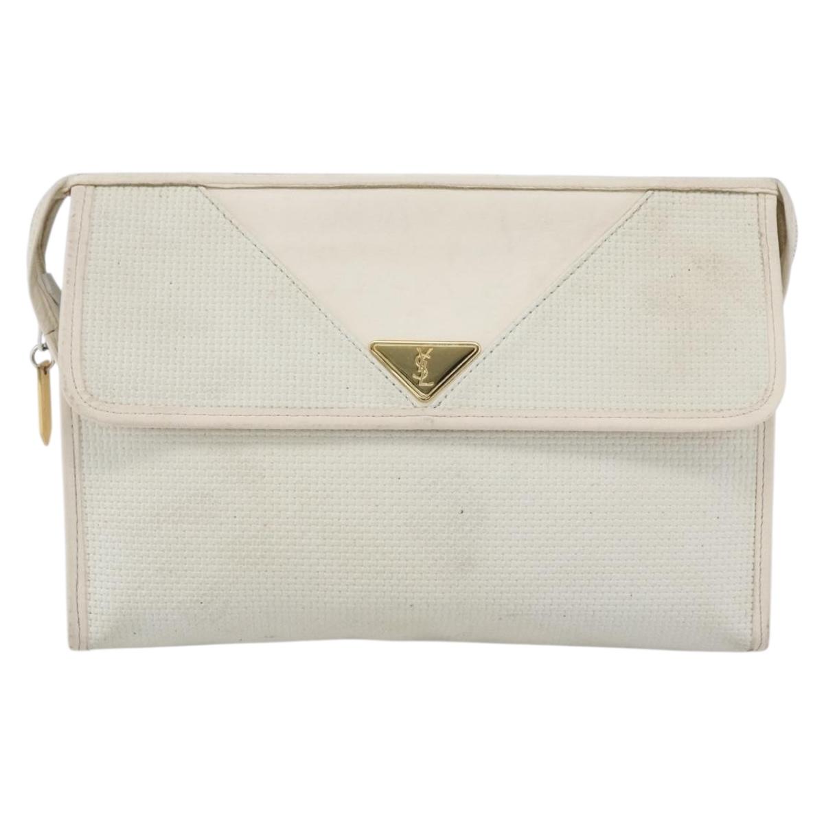 SAINT LAURENT Clutch Bag Coated Canvas White Gold - bs32442