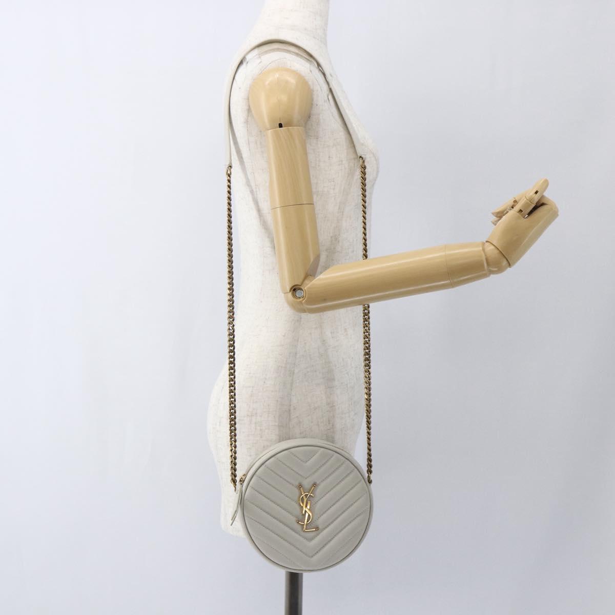 SAINT LAURENT Vinyl Chain Shoulder Bag Leather White Gold - ka1586SAM