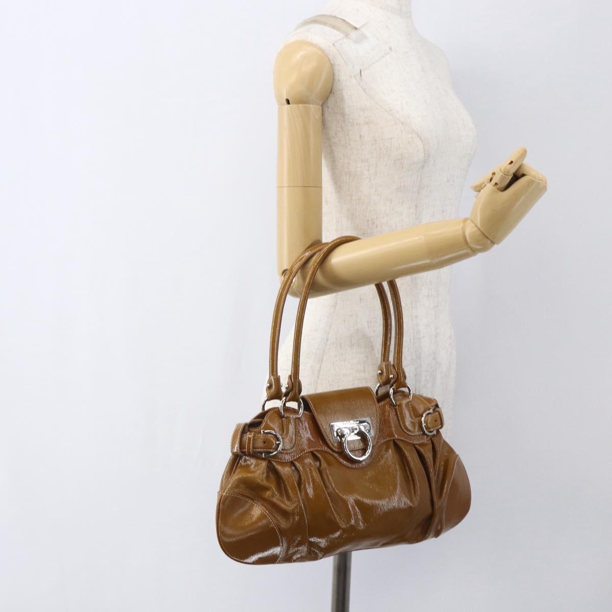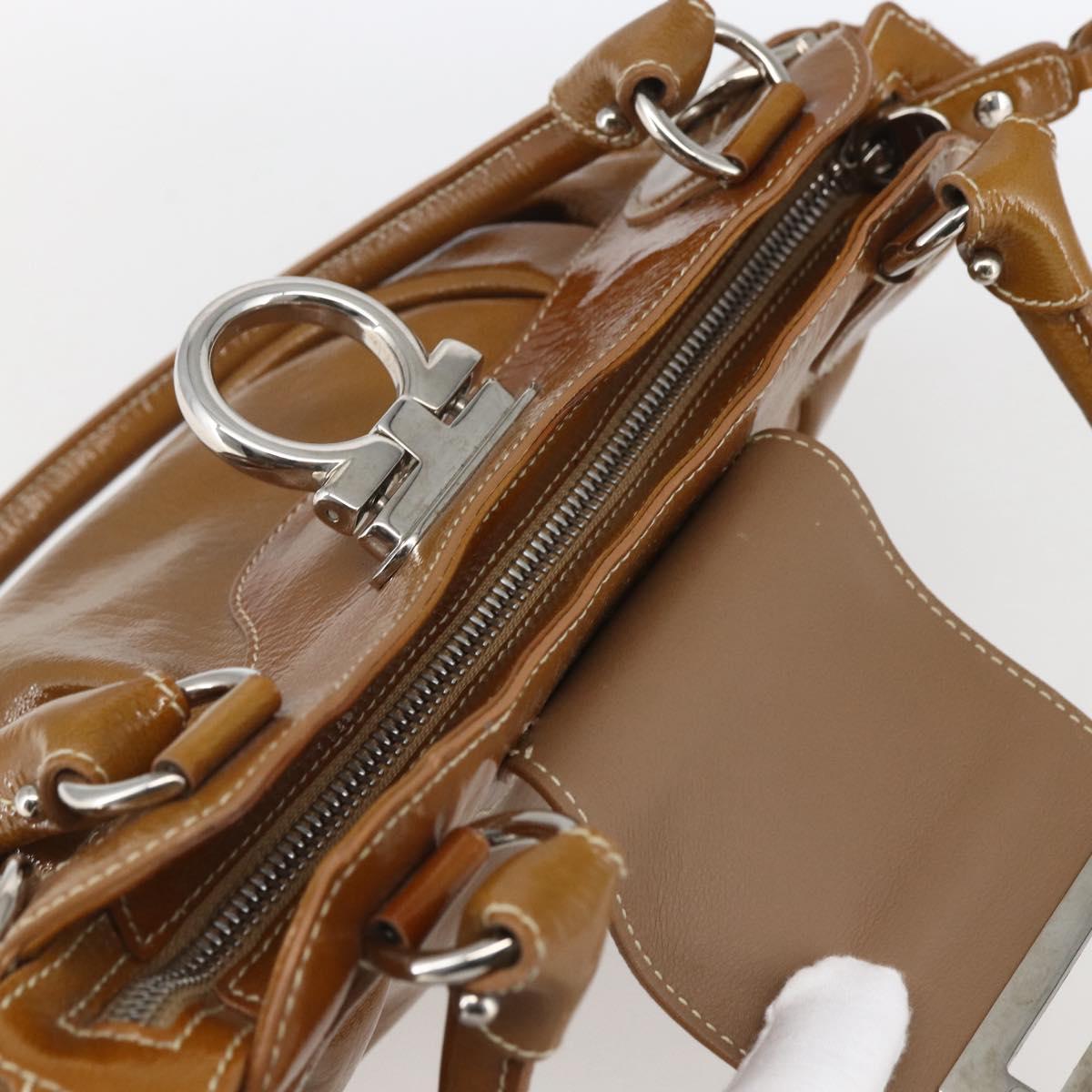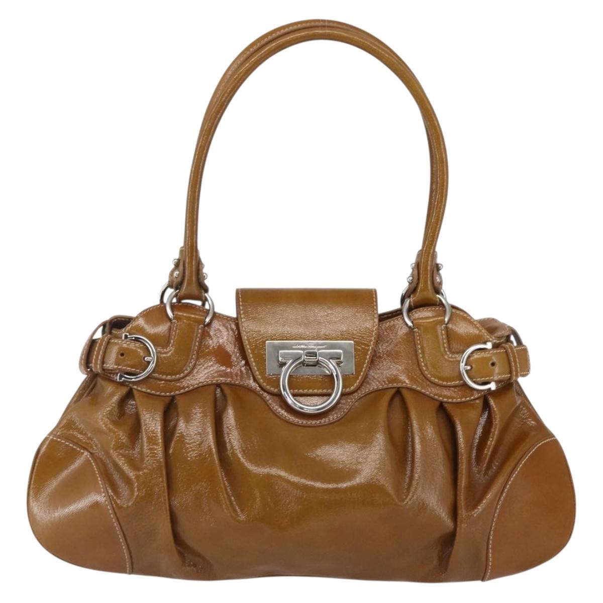 Salvatore Ferragamo Gancini Hand Bag Patent leather Brown Silver - 166433