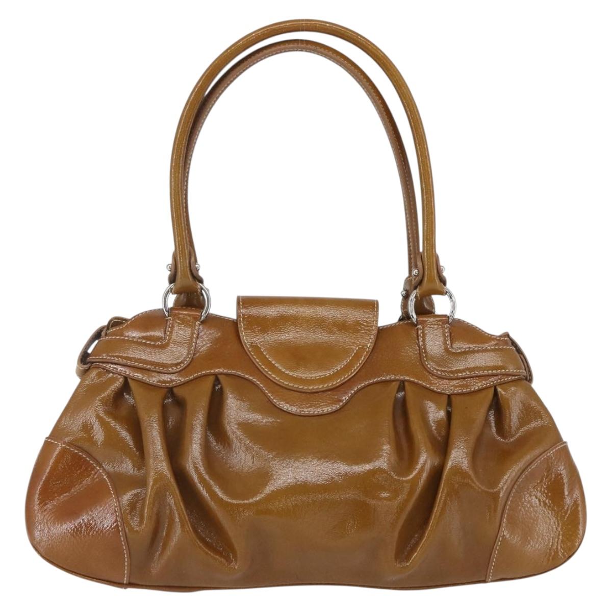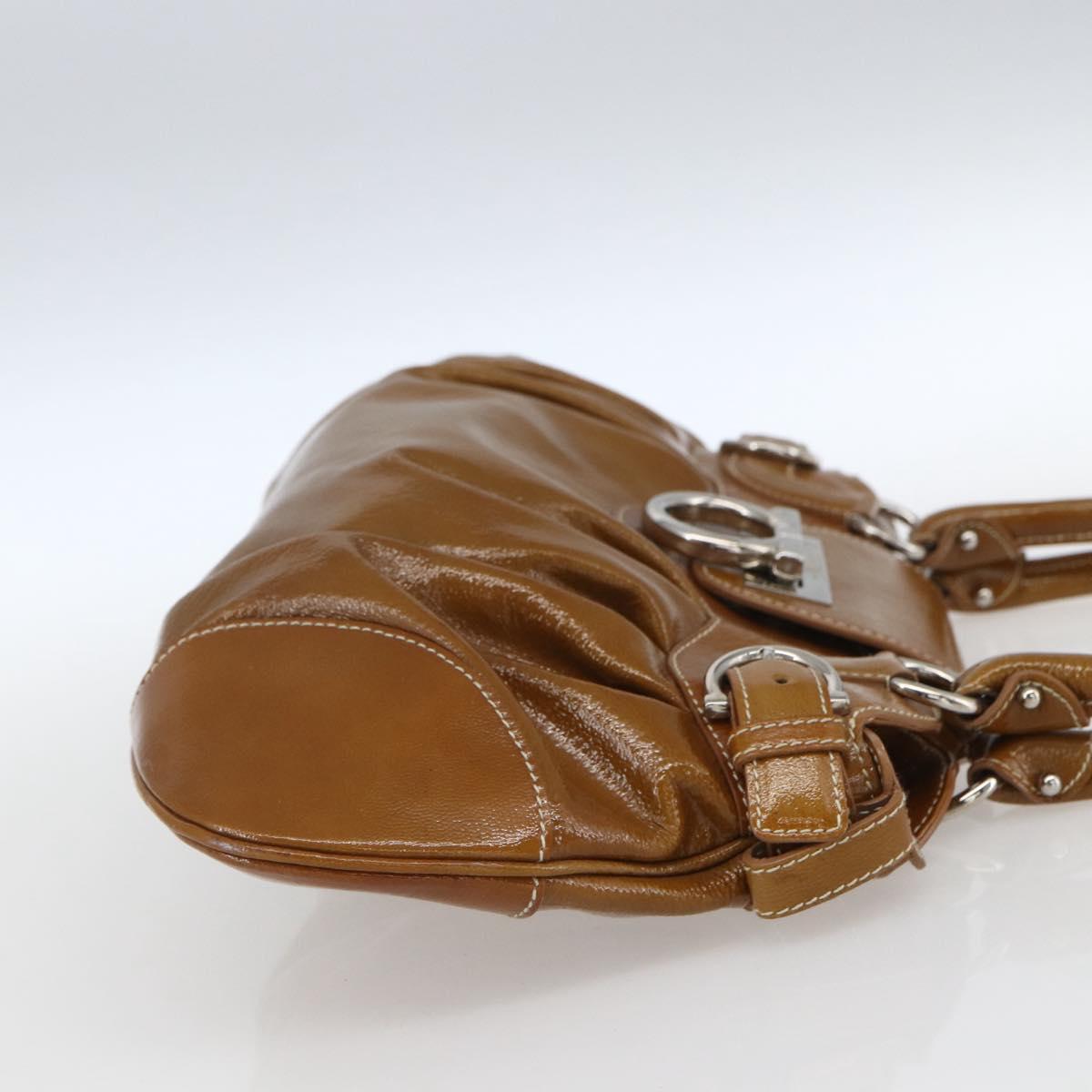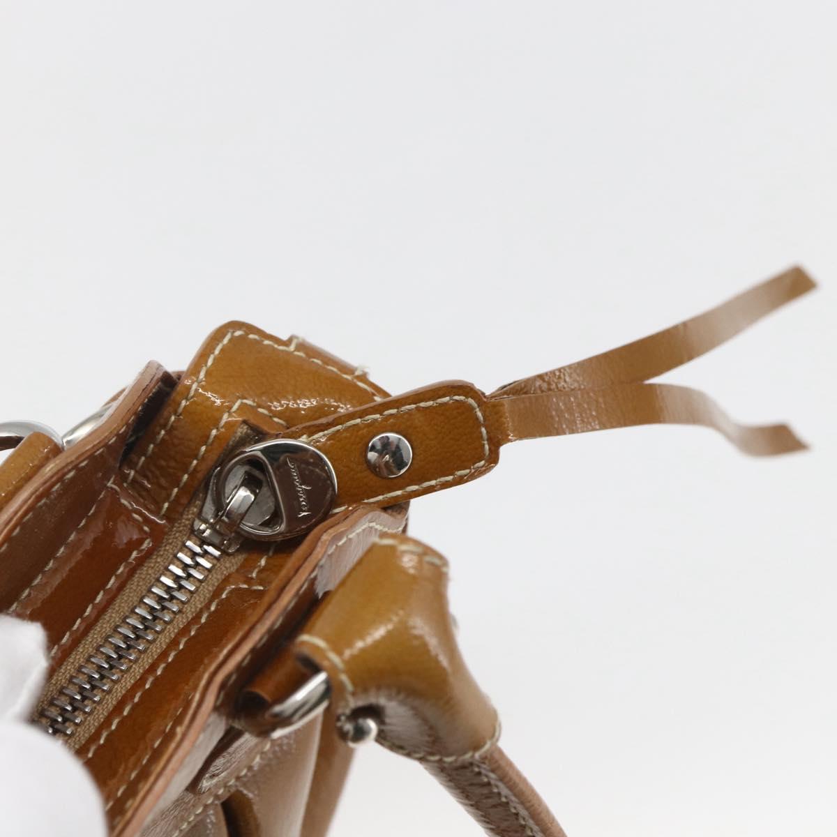 Salvatore Ferragamo Gancini Hand Bag Patent leather Brown Silver - 166433