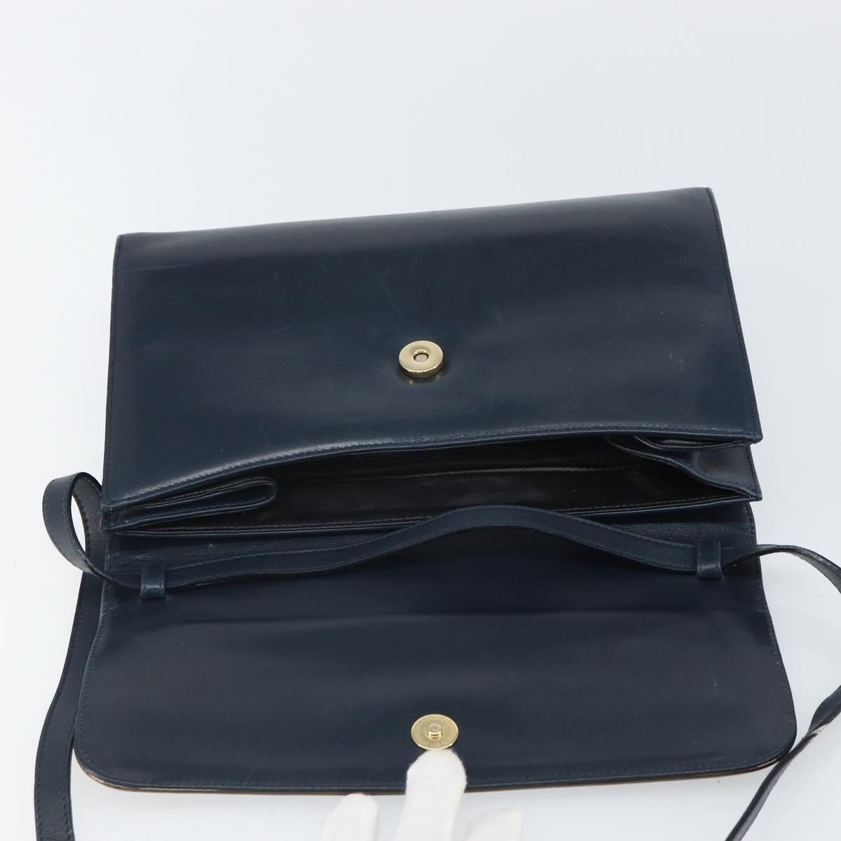 Salvatore Ferragamo Shoulder Bag Leather Navy Gold - 166744