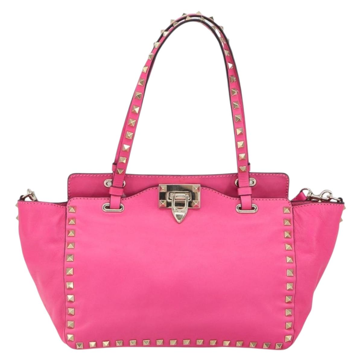 VALENTINO Rock Studs Hand Bag Leather 2way Pink Gold - BA9568V