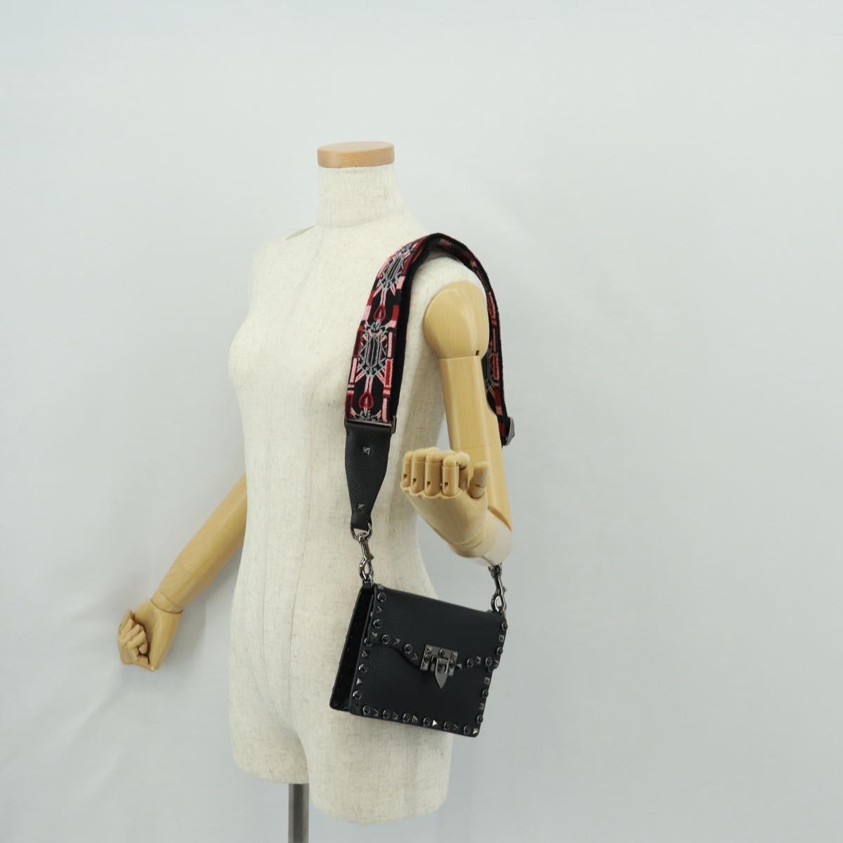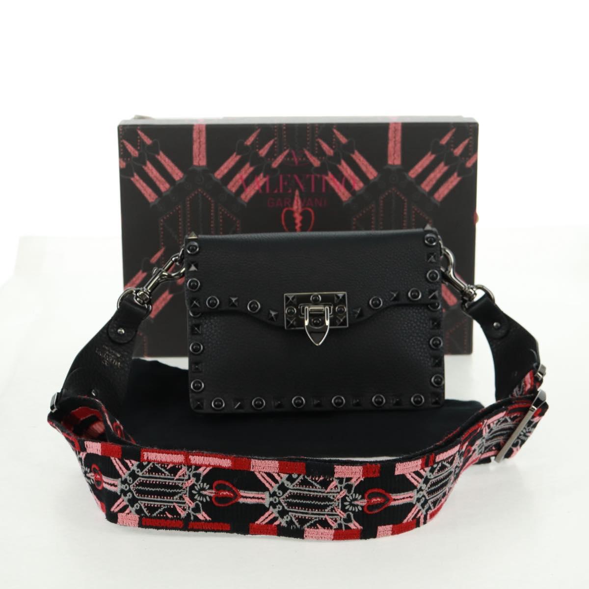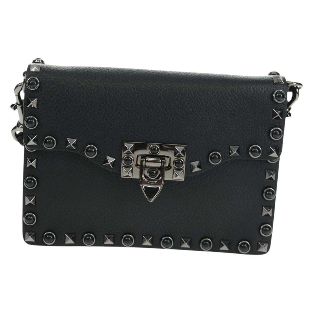 VALENTINO Rock Studs Shoulder Bag Leather Black Silver - 164070SAV