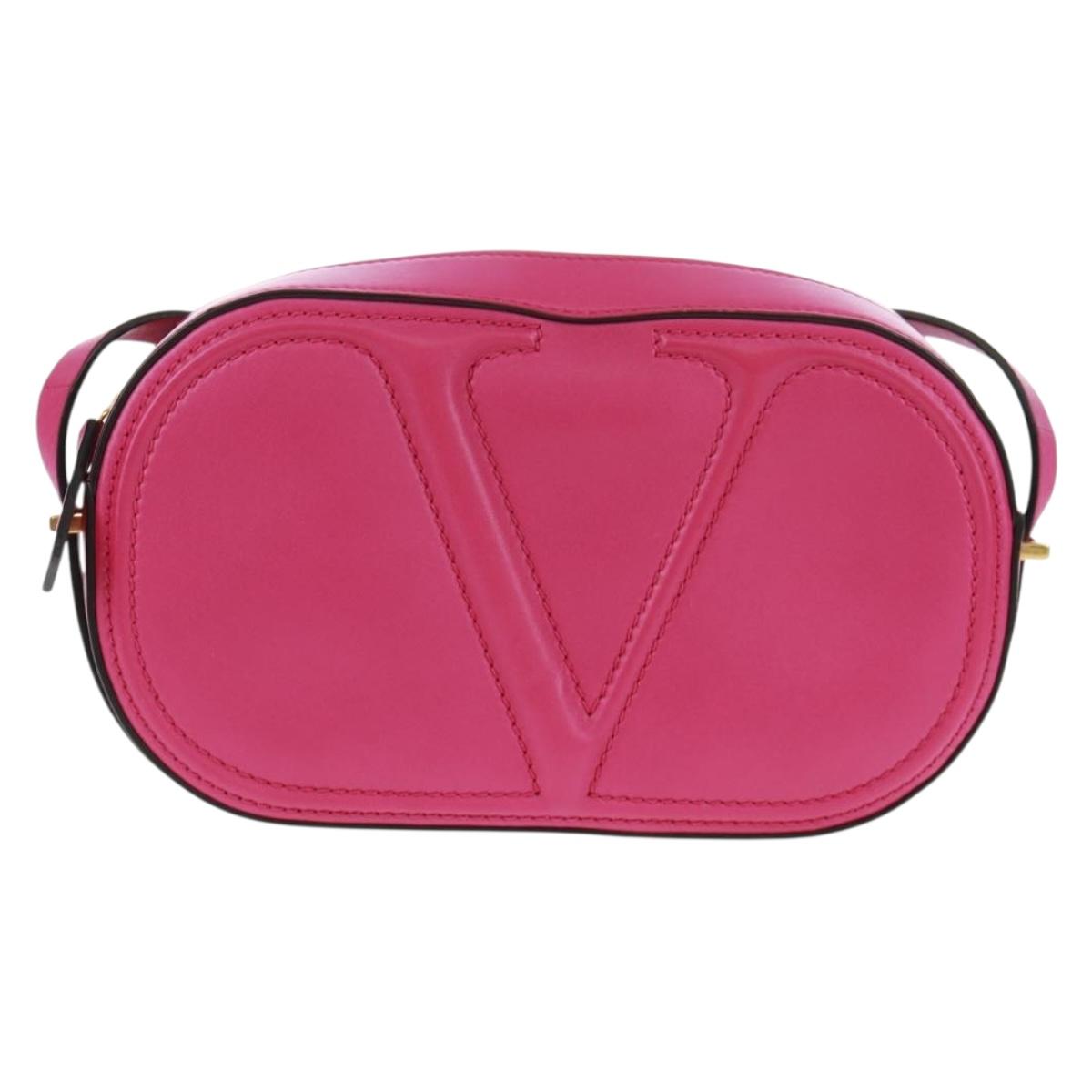 VALENTINO V Logo Walk Shoulder Bag Leather Pink Gold - am10527V