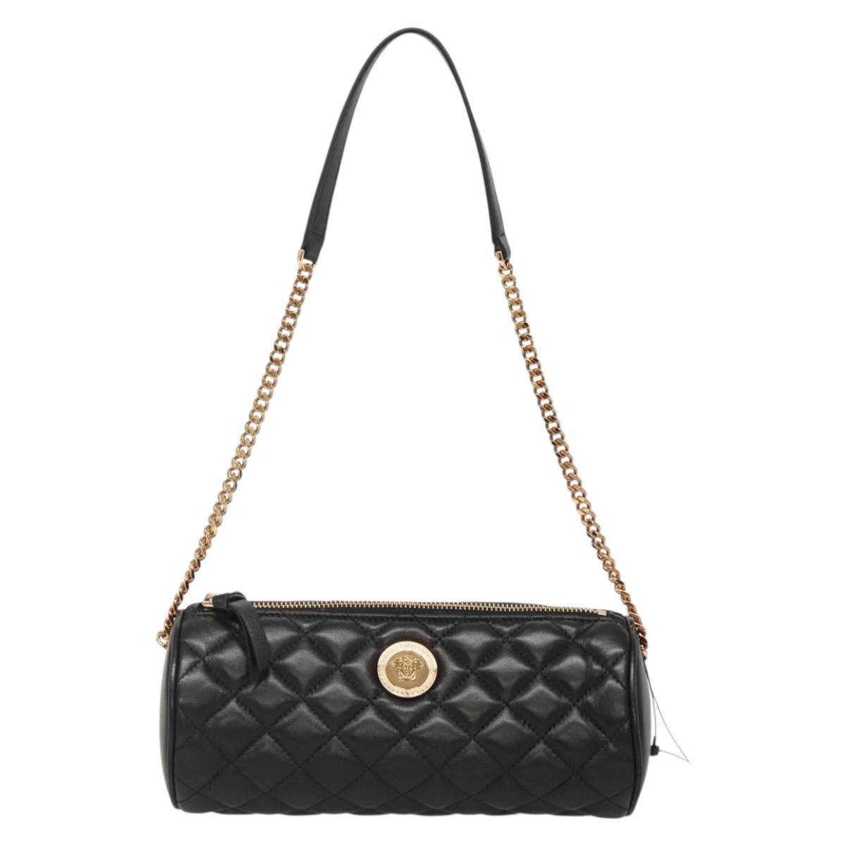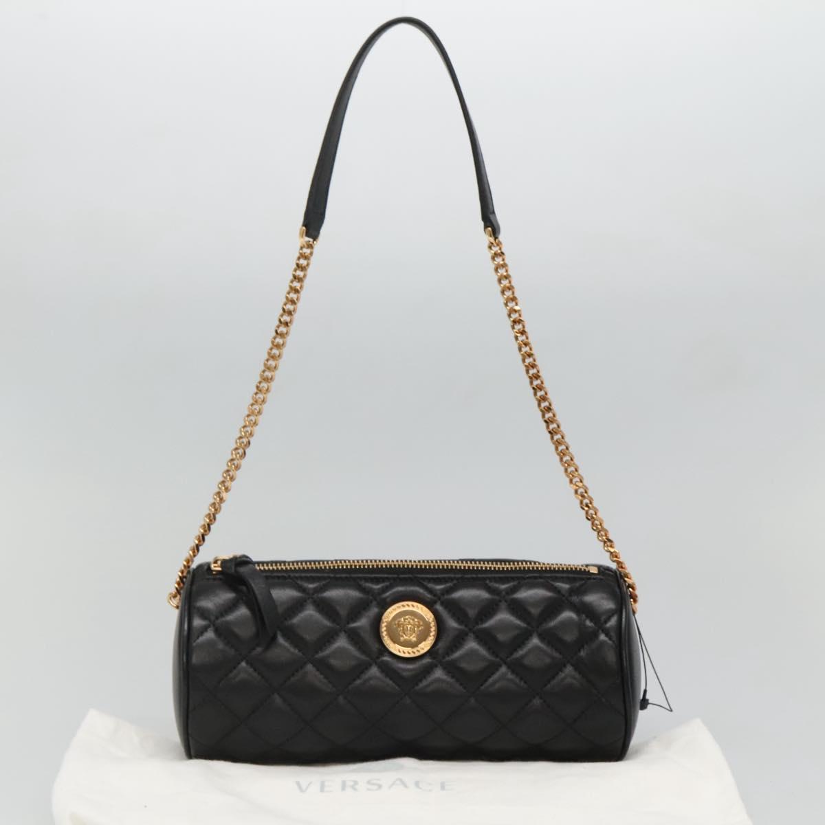 VERSACE Chain Shoulder Bag Leather Black Gold - 130261